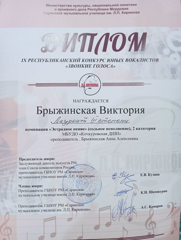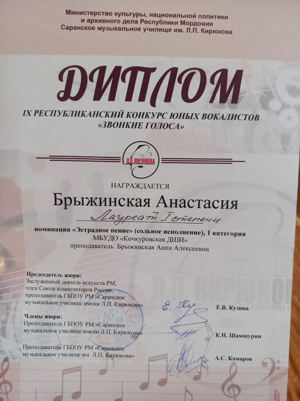 Муниципальное бюджетное учреждение дополнительного образования «Кочкуровская детская школа искусств» Кочкуровского муниципального района Республики Мордовия